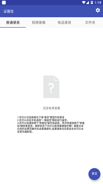 2.请确认在本应用设置页面开启了手机音量键录音、录像。
