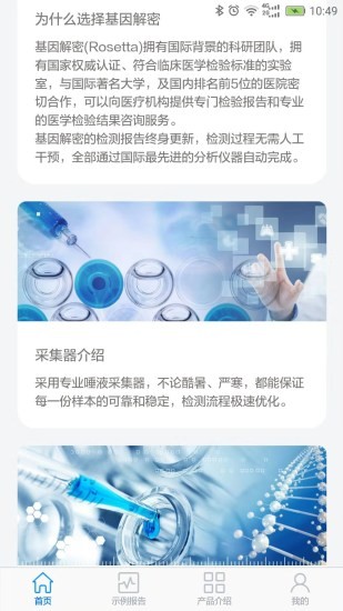 罗塞塔基因安卓手机版汇集了众多基因检测套餐,包括了遗传特质、遗传风险、运动基因、营养代谢、心理、皮肤管理等,项目丰富,用户也可以自己定制专属的基因检测项目,欢迎有需要的朋友下载使用!