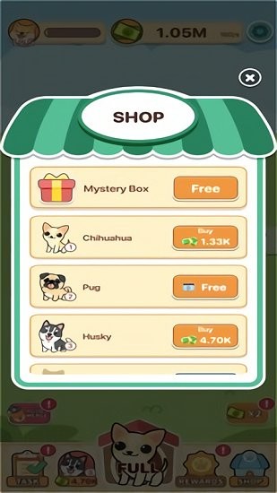 2、小狗崽能够随机产生金币,记得收取,能够在商店购买东西;