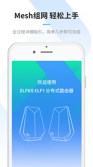 1.组网引导:即便以前从未使用过mesh路由器组网,也能够在初次使用APP设置路由器时获得详细指引,轻松几分钟即可完成ELF系列路由器组网。