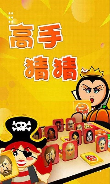高手猜猜手游是一款心理博弈的休闲益智类游戏,从24个卡通人物中挑选一个,这个人物目前就代表着你,接下来游戏的双方就需要相互询问人物特点进行筛选排除!