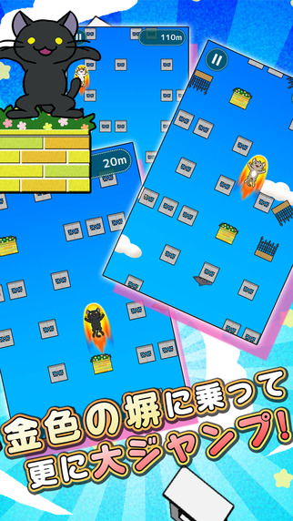 猫咪跳跃修改版是一款运行在安卓平台上的跳跃类手机,游戏中可爱的猫咪跳跃!不知不觉就玩了中毒性超群的免费游戏的乐趣!!可以从个性溢出的3只猫的中挑选喜欢的猫!取得猫爱吃的东西,跳的更高吧!左边是用了道具之后的火箭喵~右边是选用道具!游戏画面萌萌哒,在经典的游戏中加入了在元素,更加有趣,喜欢的朋友快来下载玩吧!