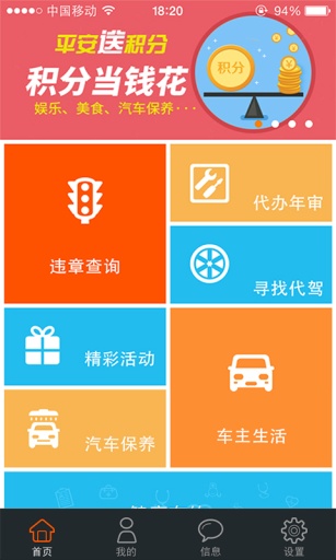 平安积分宝客户端上线了!此客户端集山东平安产险所有车辆增值服务于一身,代驾、年审、违章提醒、汽车美容等功能为一体,吃喝玩乐购通通可以通过客户端尽情畅享!更有超值积分兑换,签到就送积分,再不下载就out了!