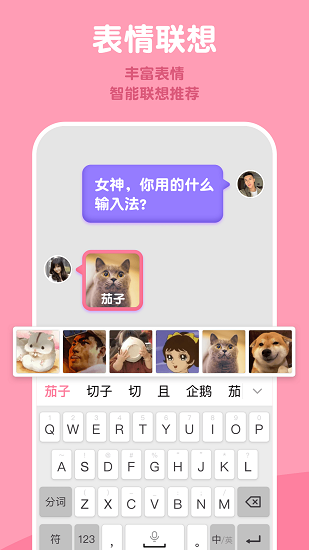 茄子输入法极速版app能够在这里找到超多有趣的表情包,并且这里还有精准的搜索,让你能够轻松输入,支持联想功能,再也不怕打字太快出错了,并且这里有超多皮肤,让你随时随地都能够跟换,让你打字速度更快。