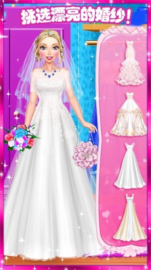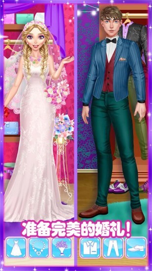 和公主一起参加一个最酷的梦幻婚礼设计,为公主化妆换装,美甲,设计戒指。