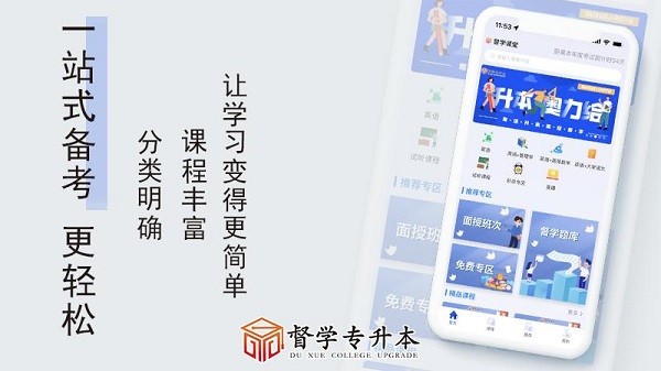督学课堂,为升本学子提供一个良好的学习平台,APP内涵盖录播课、直播课、题库、教材和考试资讯等几大板块,课程丰富、独家体系、同时配备督学服务,为你的考试保驾护航!督学课堂,用心准备每一堂课!致力于服务升本学子!专注升本,赢在督学!