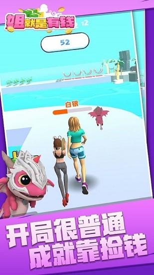 1、这里的赛道上有非常多的拆票哦,玩家要控制小姐姐去把这些金币收集起来,可以让你实现一夜暴富的梦想哦,你可以很顺利的成为一个富婆。