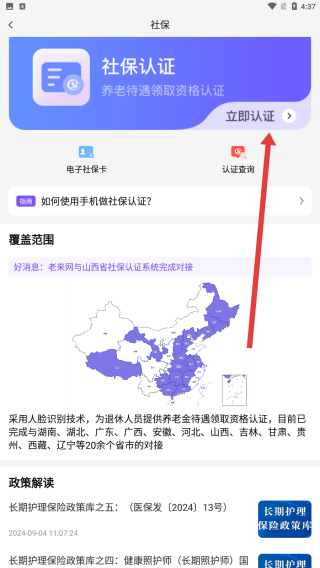 2、在社保页面里,按照箭头指示点击立即认证,开始认证操作。
