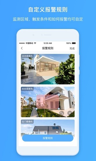 用户可根据自己家庭情况,在每个摄像机拍摄画面内自定义报警区域、报警规则以及生效的时间等,从而更个性化的适配不同家庭的不同安全防护场景