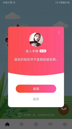 摩尔交友,非常好玩的线上交友活动,各种趣味互动话题都在这分享给你,让你来这互动聊天更加的开心,同时这里的话题也是很全面,你要是喜欢交友就别错过,各种优秀的人都在这等你来认识,脱单的机会也是很快速,你要是想扩大自己的社交圈,这个软件就是最好的选择。