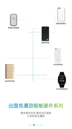 旅信通过技术授权的方式与各大品牌商共同开发出多形态免漫游智能硬件。在全世界任何一个地方,只需将国内sim卡插入智能硬件中,即可实现接打电话、收发短信只收国内资费。