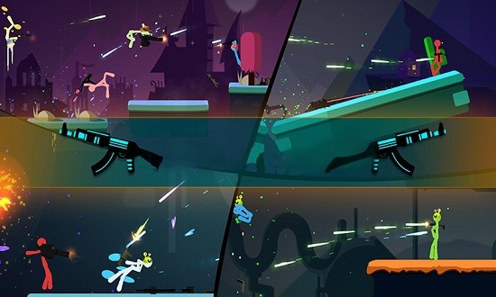 火柴人凌空对战是以火柴人为主角的格斗类游戏,游戏中你可以使用非常多的武器进行战斗,不管是什么武器都有可能出现,你需要将你的其他对手都淘汰,游戏的打斗做的非常的不错,炫酷的特技让你眼花缭乱,多样化的武器让你玩的痛快,喜欢的朋友快来下载吧!