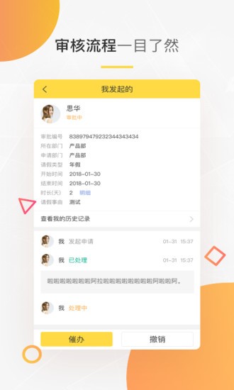 点击需要处理的模块以后,可以查看到员工提交的审批内容