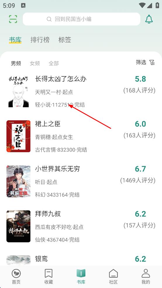 2、在书库页面,浏览小说列表,找到想要查看的小说,比如“长得太凶了怎么办”,点击该小说,进入小说详情页面。