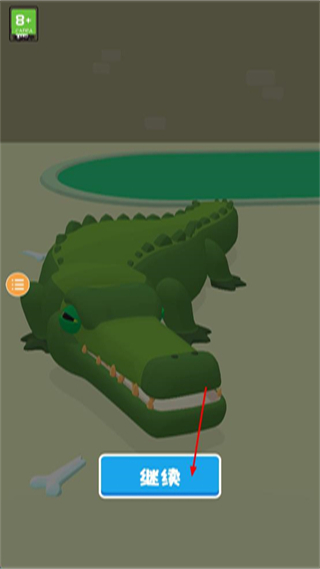 2、等待鳄鱼进食完毕,待界面出现蓝色继续按钮,点击该按钮推进流程。
