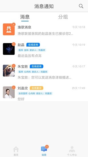 4、【通讯录】这里可以查找同行、群组、主页。还可以找到自己医院所在的医院联盟。