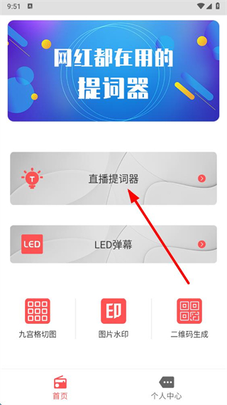 1、在直播提词器app首页,点击直播提词器选项,进入提词器界面。