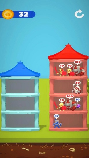 3、丰富的塔楼可以自由选择来进行挑战,不同的塔楼所拥有的敌人数量是不一样的。
