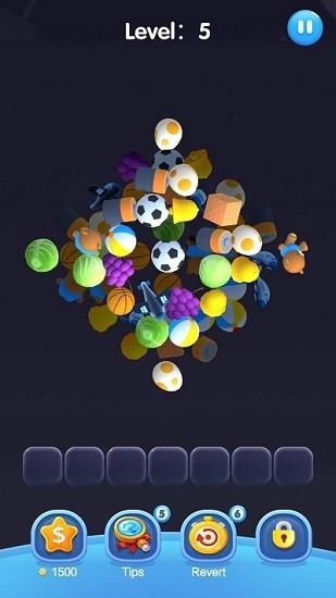 2、只需匹配三个相同的3D元素即可消除!通过一关后,会增加新的元素。