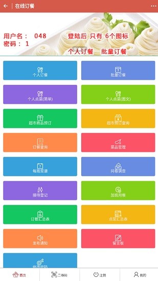 个人订餐中可以订任意一天的餐,可以查询单位内部发的通知及留言功能。