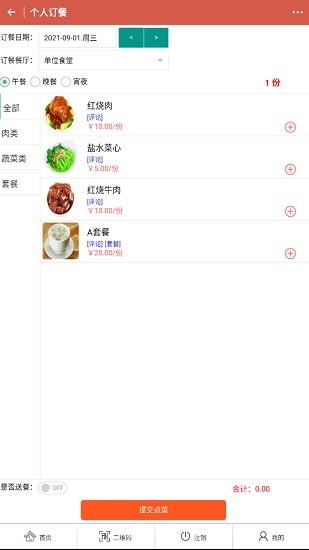 能方便快捷的点今天或者明天的早、午、晚、宵夜的菜品。