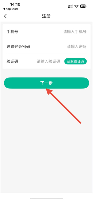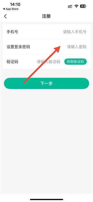 3、在注册页面,输入手机号、设置登录密码,点击获取验证码并输入验证码。
