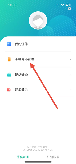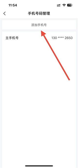 3、进入手机号码管理页面后,点击添加手机号选项。