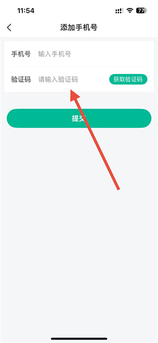 4、在添加手机号页面,输入手机号和验证码,点击提交按钮即可完成手机号码添加。