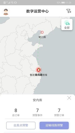路线预警,可及时为用户退工路线预警提醒服务,以便用户选择最佳路线进行运送;