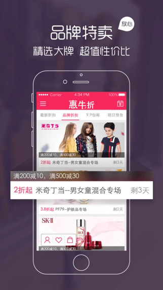 惠牛折是一款手机购物类软件,里面含有海量折扣商品,并且每天准时上新,还有优惠券及明日预告,让你不错过任何一件好商品,大牌多多,折扣多多,喜爱的朋友赶快下载体验吧!