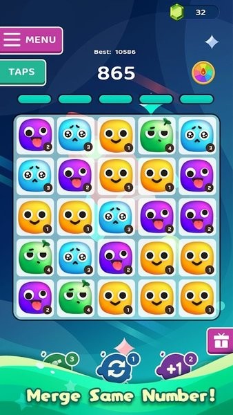 1、表情符号赢家中玩家可以和表情包们一起游戏,相同的表情包可以进行合成。
