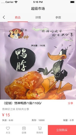 中馋超级市场app安卓版在手机上也可以逛大型超市了,在这里你想买什么都是可以直接进行搜索的,还可以在分区里进行选购。每日有很多品牌的商品都在做特价销售,你可以去参与活动进行低价秒杀。同时线上的优惠券也是可以免费领取的哦,欢迎有需要的朋友下载使用!