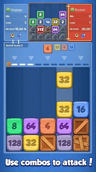 4、随机匹配对手,一起玩合成和消除,取得胜利的一方将会获得大量钻石和金币.