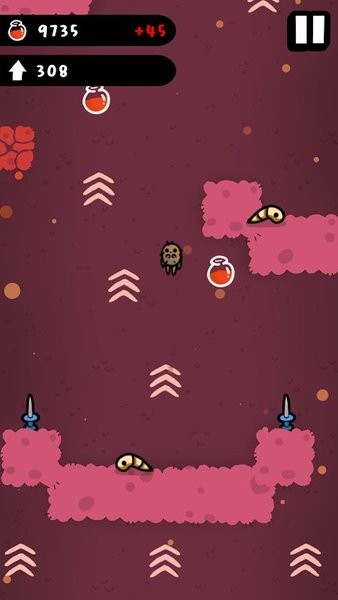 2、手指滑动来控制跳蚤的移动,注意躲避障碍物,并收集多多的药水。