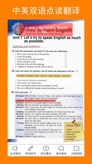 3、与课文内容同步,单词、句子点读、跟读,课外随时随地复习巩固;
