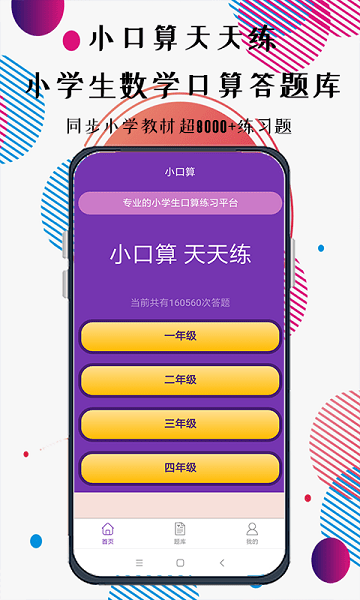 提供了加减乘除运算以及加减混合运算,分年级分难度,多维度口算联系题库.