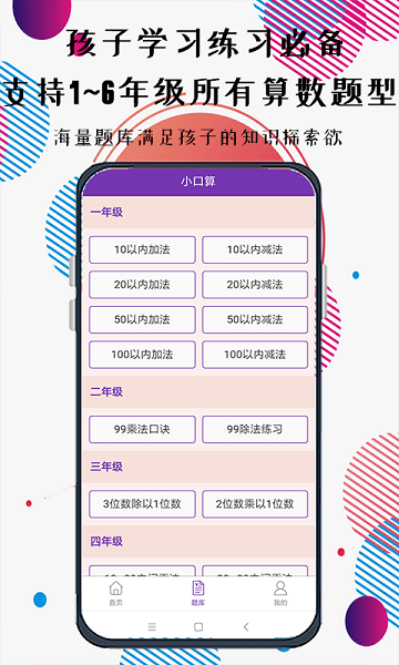 简单10以内加减乘除算法、99乘法口诀、100以内加减乘除,以适应于不同年龄段学生.