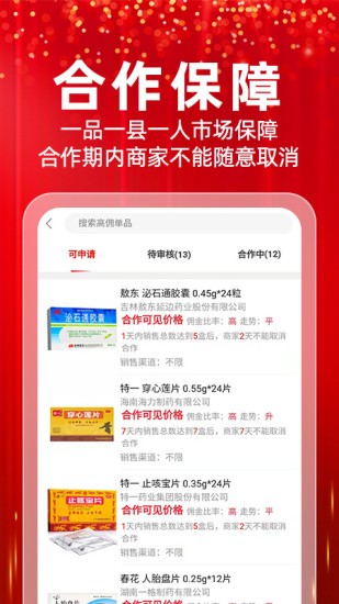 品种齐全。汇聚全国专注控销的药企、品牌商、一级分销商,砍掉中间加价环节,底价直供终端,为盟友们提供全品牌、全品类的近万控销药品合作推广;