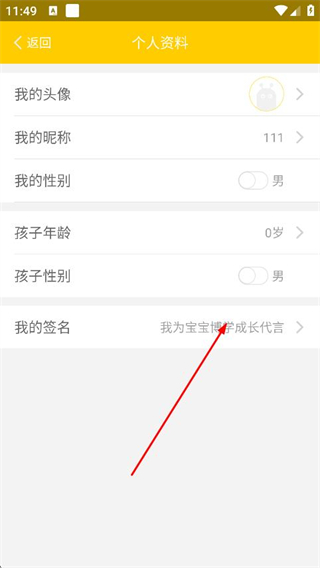 3、在个人资料页面中,点击我的签名选项,进入编辑页面。