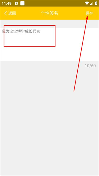 4、输入个性签名内容,点击保存,即可完成个性签名的设置。