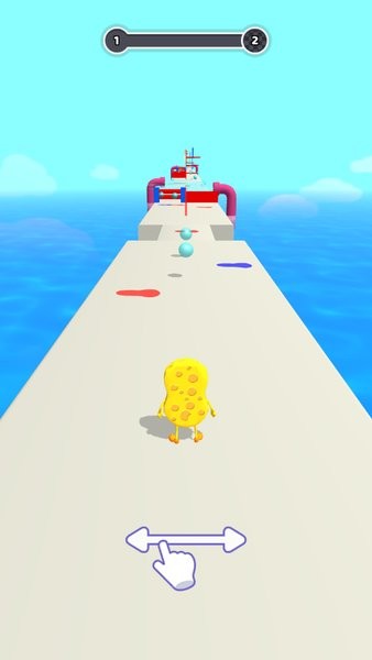 海绵跑秀玩家控制的主角是一块酷似花生的海面,来改变海面的体积和颜色,模拟真实的场景进行各种精彩的操作体验,但要注意躲避赛道上的机关和陷阱,尤其是那个能够把你榨干的滚子,经过后再用风一吹,你就玩完了。