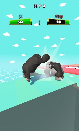《动物模拟战争》是一款结合了动作和跑酷元素的考验反应力休闲小游戏。游戏里的主角是一个巨人猩猩。融合更多的道具从小人化身为巨人,增加自己的巨人体积,与终点的守关BOSS进行搏斗,一脚飞踢将敌人送上天!
