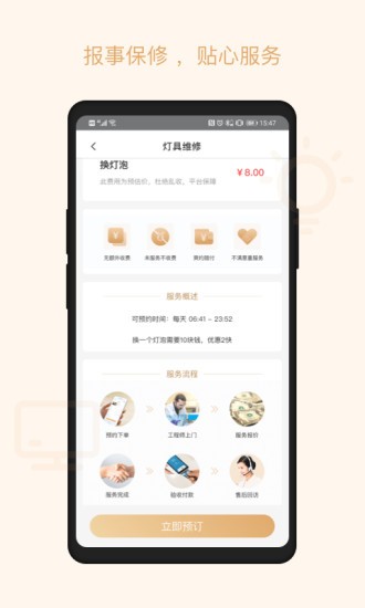 2、居家服务,在家就可以预约,无需出门找物业,简单便捷的操作模式,服务更贴心;