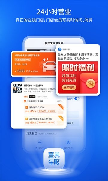 慧养车服,你自己的在线门店,24小时营业,全年不打烊!
