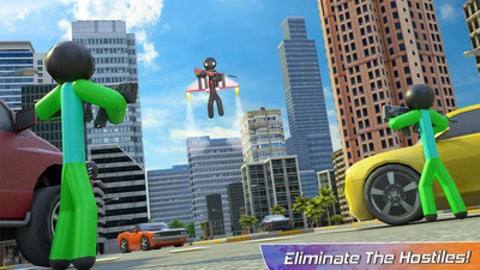 1、经典火柴人形象,化身正义之士,开启你的城市飞行冒险。