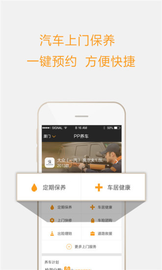 pp养车是一款福建地区养车服务品牌应用,致力于为车主提供车险团购、汽车上门养护、出险理赔、道路救援等特色服务,是车主必备的养车服务神器,欢迎下载!