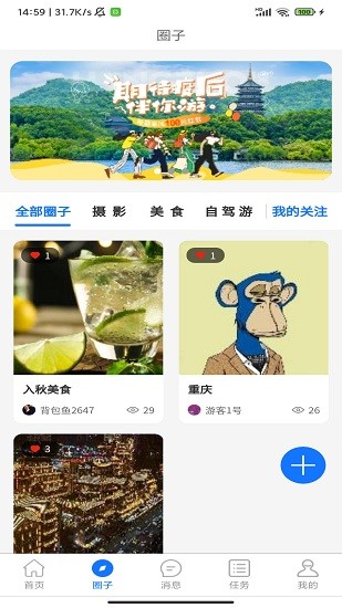 3、同时平台上建立了非常完善的线上渠道模式来进行各种不同类型的圈子构建,所有的用户都可以发布各种不同的信息,包括摄影图片以及美食分享还有自驾游等等。