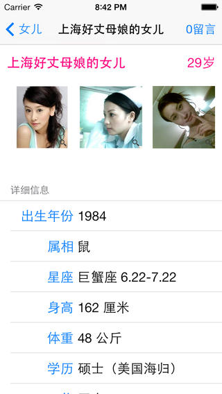 一键联系对方(对于感兴趣的对象,可以直接拨打电话或qq或发Email与对方父母进行联系,也可对该条信息进行回复留言或评论)。