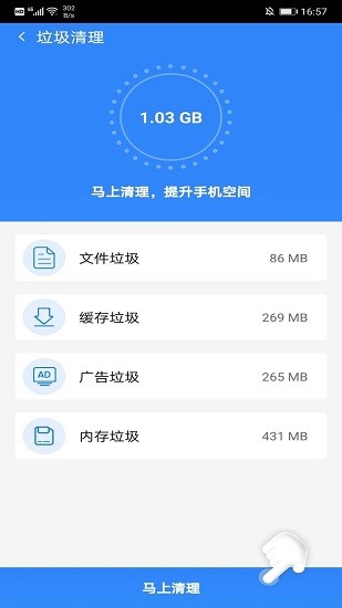 2、垃圾清理速度非常快,分分钟就能快速实现手机垃圾全盘扫描清理。