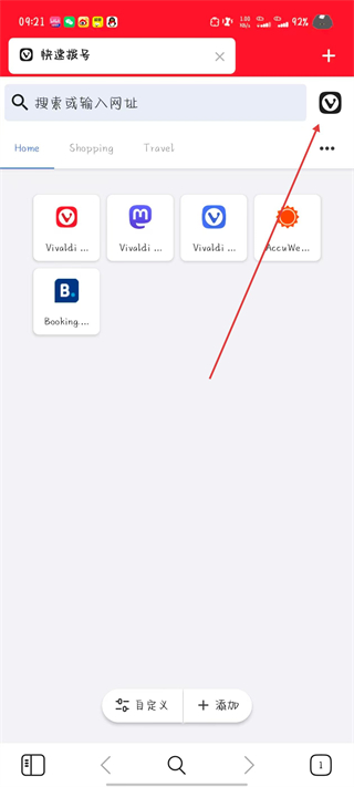 1、打开极客浏览器,点击右上角的Vivaldi图标。